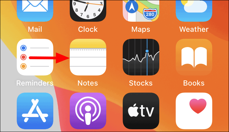 To share a note with another user, tap on the ‘Notes’ app icon on the iPhone home screen.