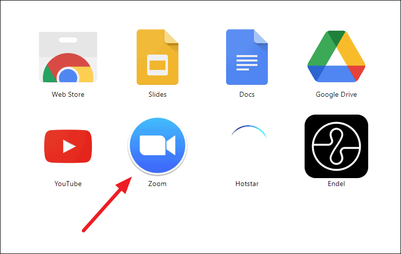 Step 4: In the Apps menu, locate and click on the Zoom app icon to launch it within Chrome.