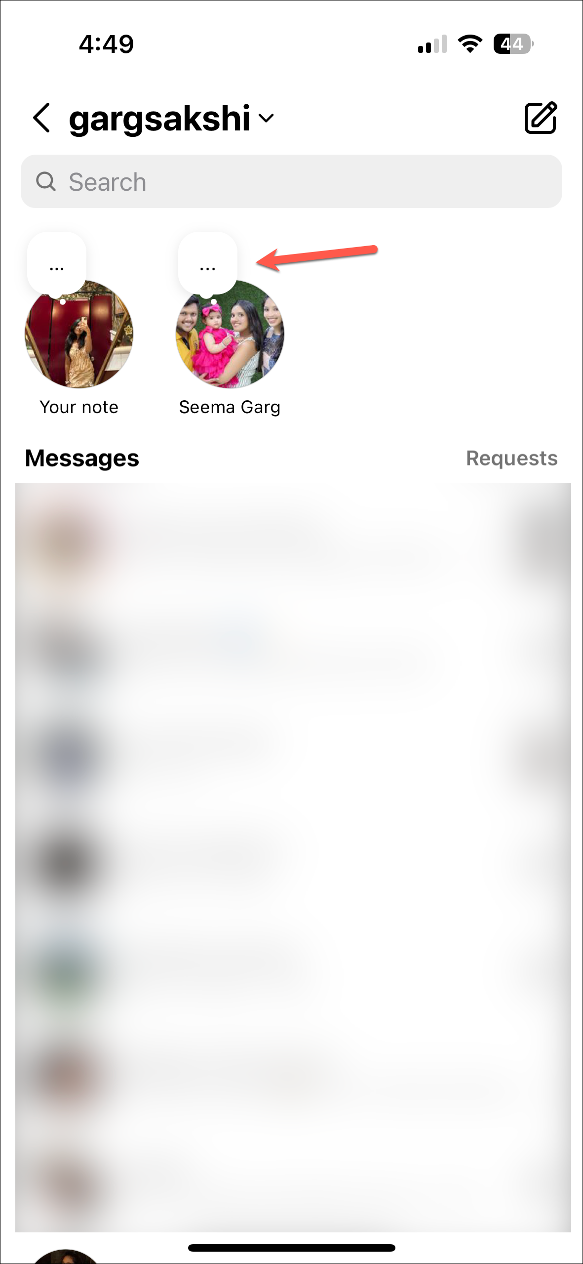 - Notes will appear at the top of your DMs. If you can't see new notes right away, swipe down on the DM's page to refresh them.