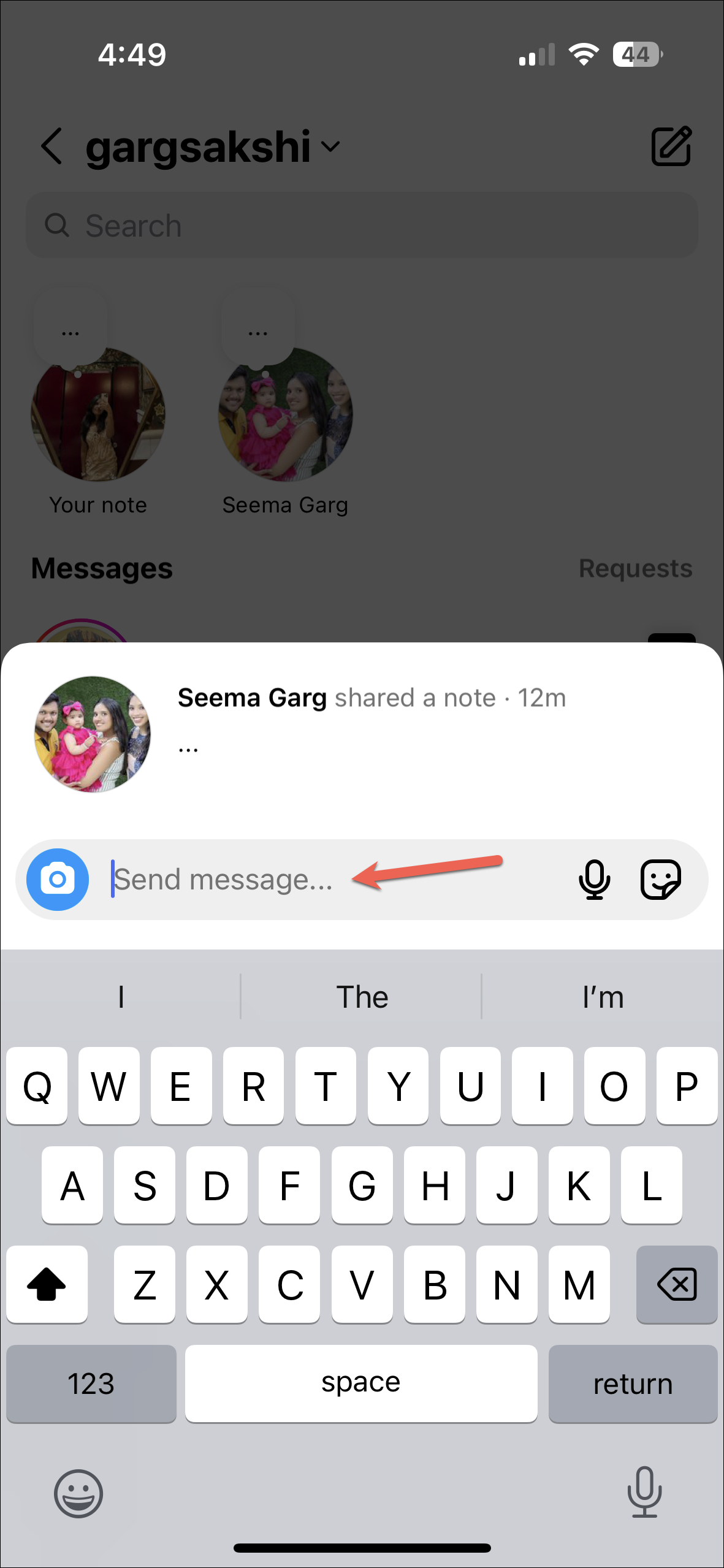 - Tap on a note to send a reply. The interface for sending the reply will appear; type it and send it. The reply will be shared as a DM to the poster. People cannot see that you've viewed their note on Instagram unless you send a reply to it.