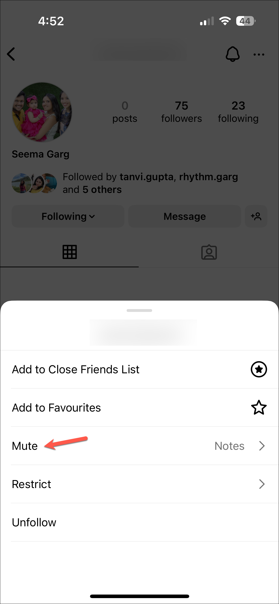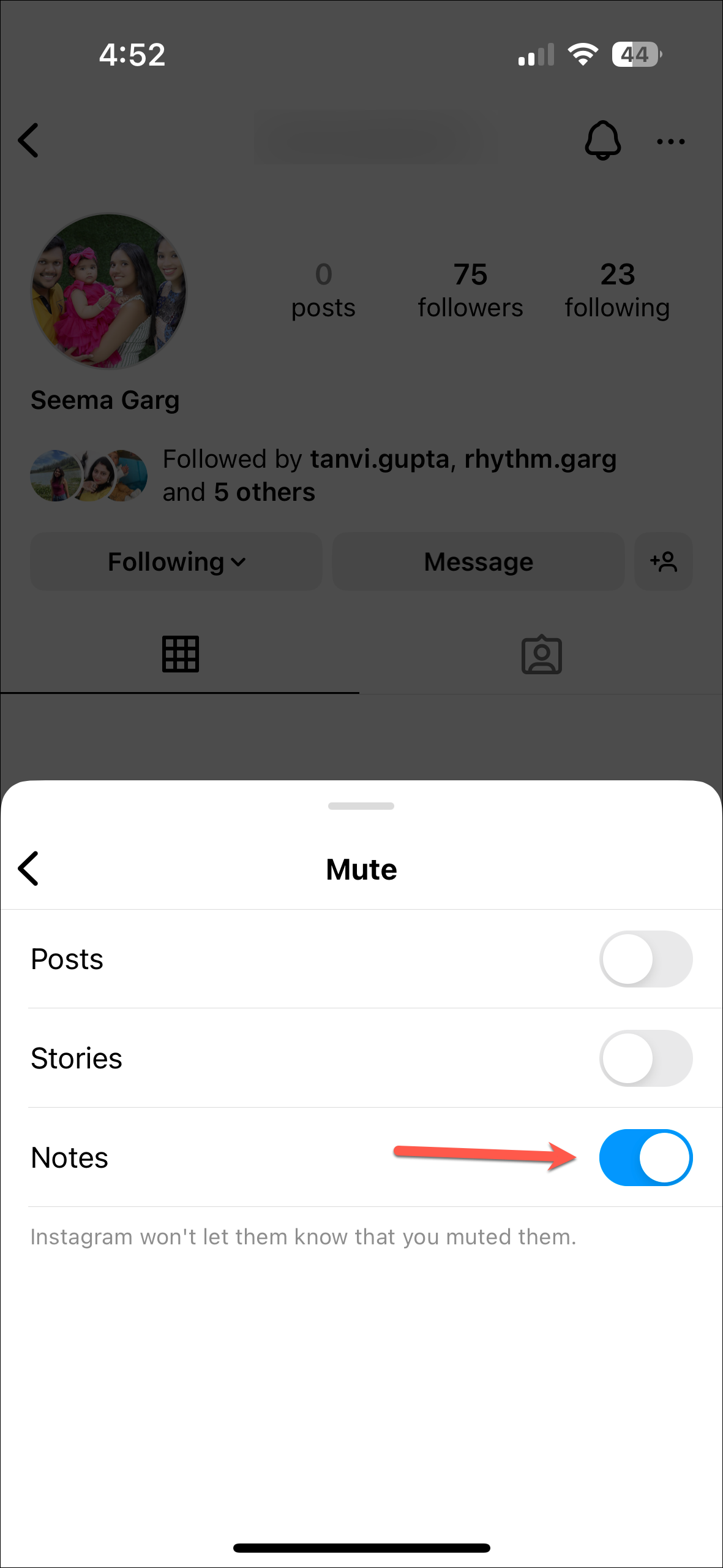 - If you mute notes from someone, you'll have to manually go to their profile to unmute the notes. Tap on the 'Following' option on their profile.
