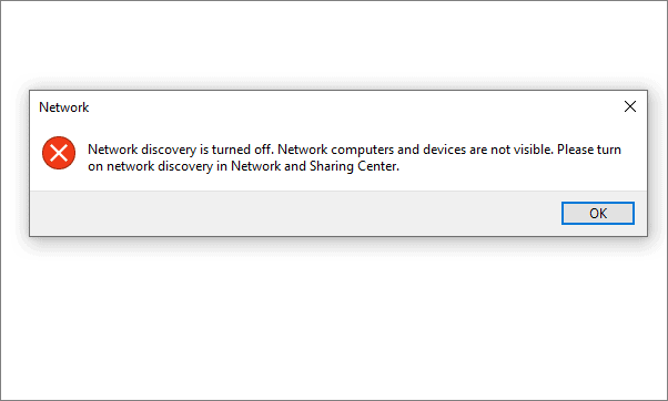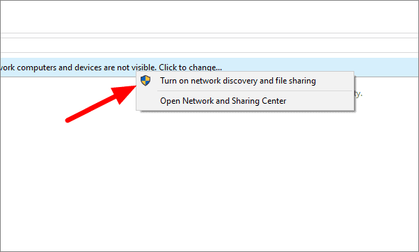 If you see this popup when you click on ‘Network’ in file explorer, click on ‘OK’. Click on the strip on the top of the window which says “Network discovery and file sharing are turned off…”. From the menu, click on ‘Turn on network discovery and file-sharing’.