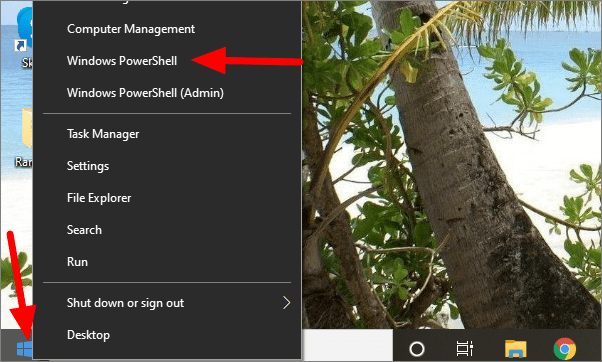 If the other devices on your network are still not visible, check the network configuration with the ping command. To check the network configuration, right-click on the Windows sign at the left corner of the taskbar and select ‘Windows PowerShell’.