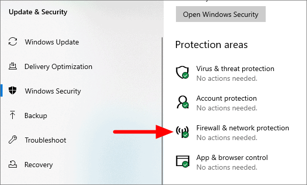 In ‘Update and Security’ settings, click on ‘Firewall & network protection’.