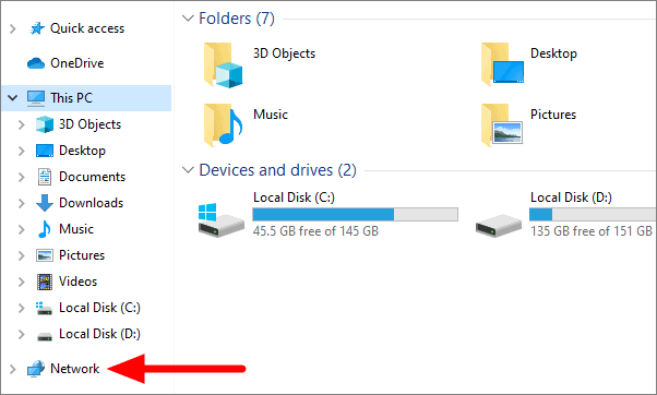 To find other computers on your network, open File Explorer and then click on ‘Network’.