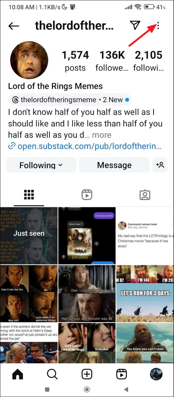 - Then tap on the three dots on the right.