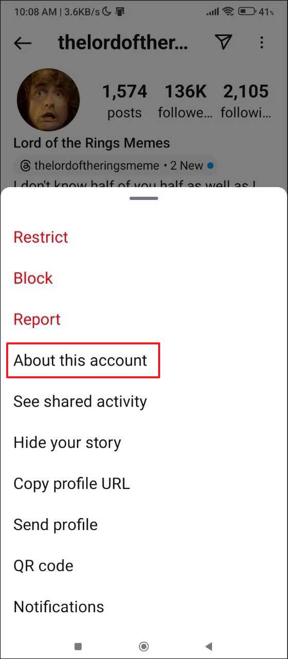 - On the next page, tap on 'About this account'.