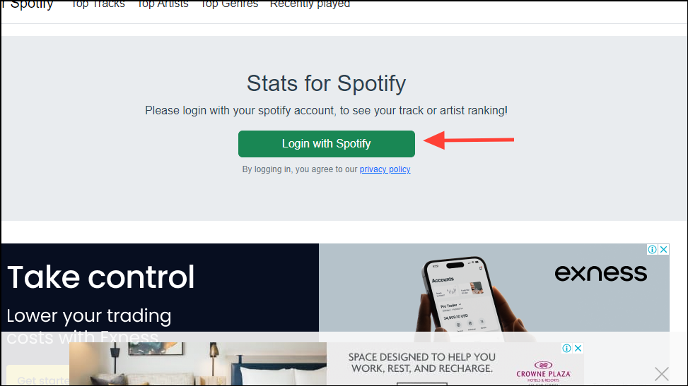 - Visit the Stats for Spotify website and click on the 'Login with Spotify' button.