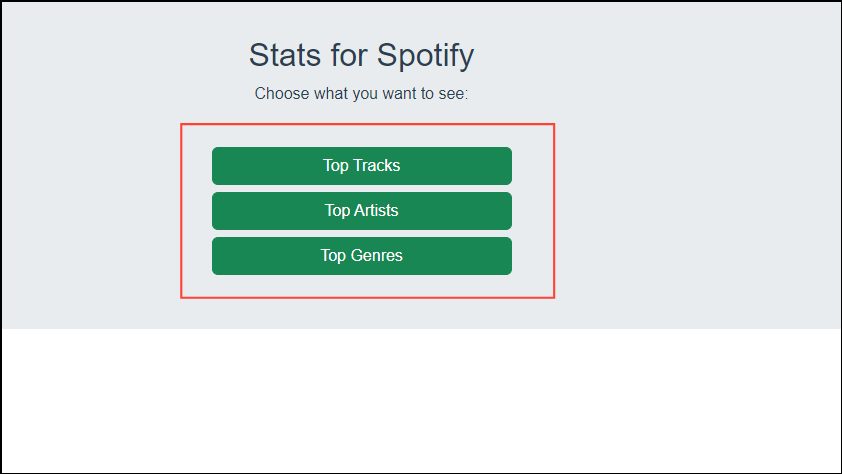 - Once you've granted permission, you can click on the 'Top Tracks', 'Top Artists', or 'Top Genres' buttons to get the required information.