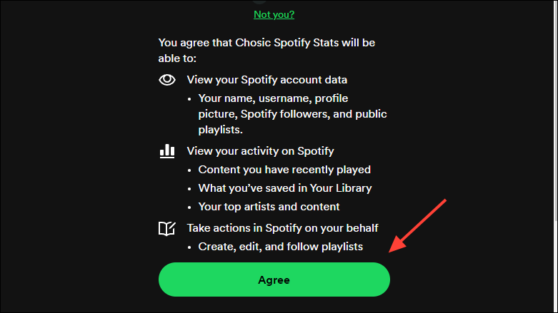- You will need to grant permission to the website to use your Spotify data. Click on the 'Agree' button to do so.