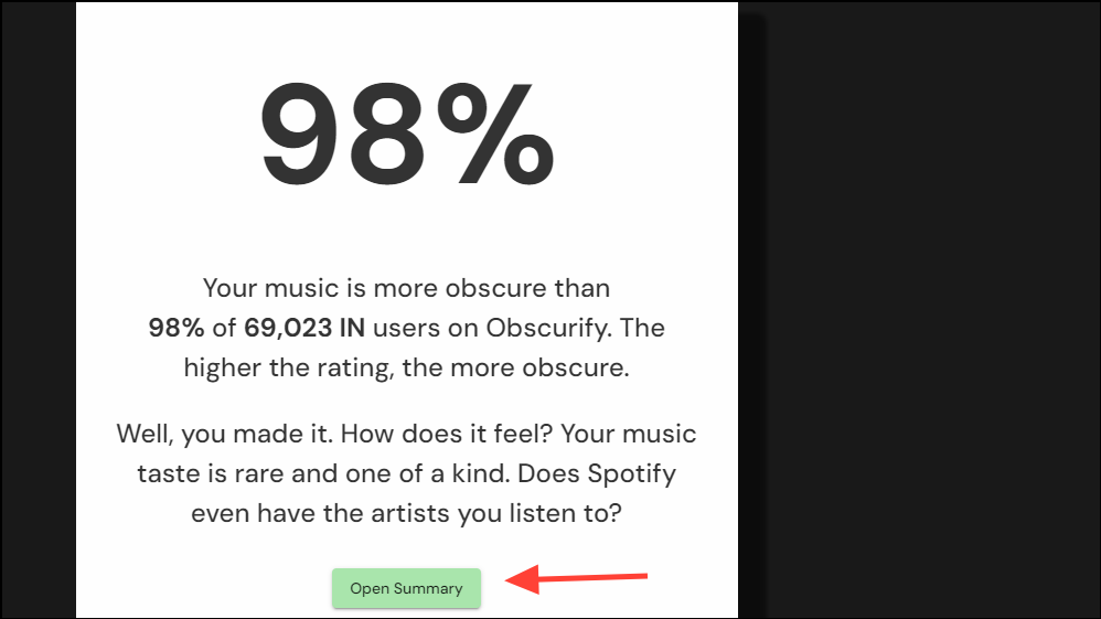 - Scroll down the page to check out other information, such as your obscurity rating. You can click on the 'Open Summary' button to view detailed information.
