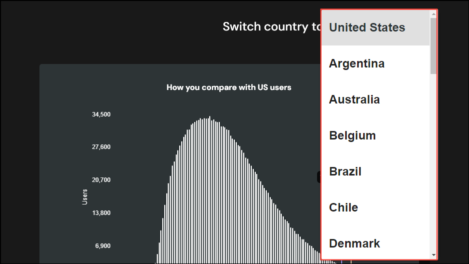 - To compare your data with listeners from other countries, scroll down and use the dropdown menu to change the country.