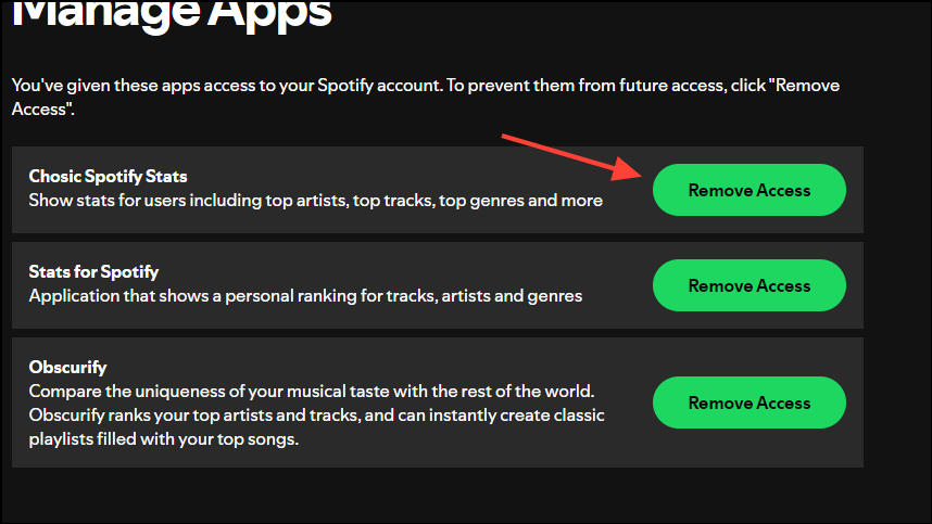 Once you've checked your stats, you should stop third-party websites from accessing your Spotify account. To do so,