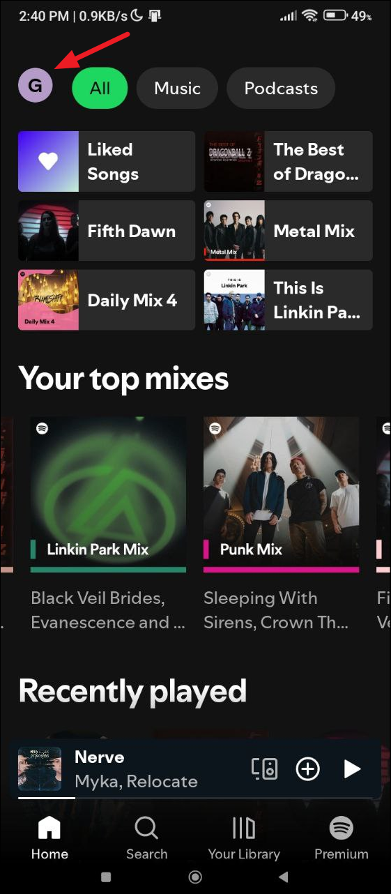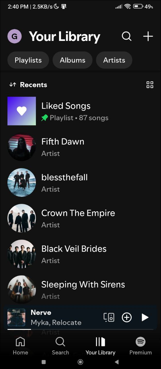 - You will see a screen that shows you your recently played music.