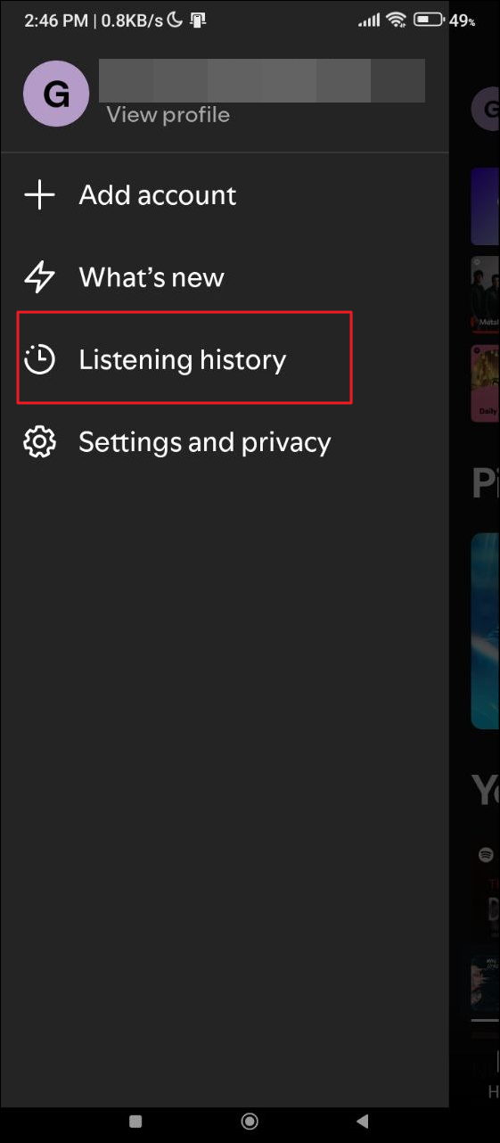- Tap on 'Listening History' to see what you've listened to recently.