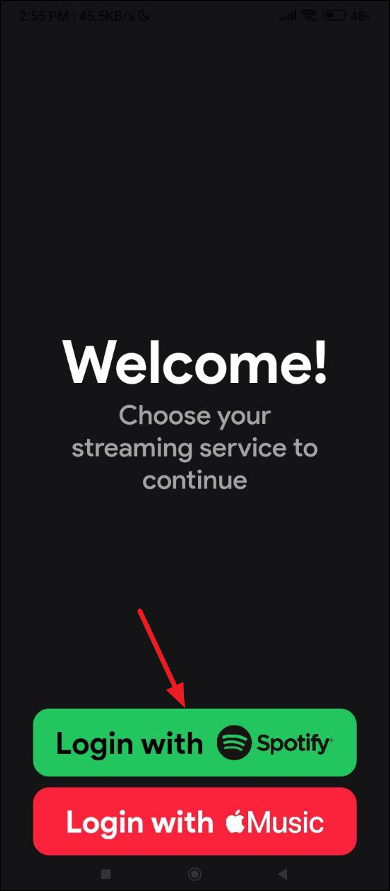 - Once it is installed, tap on the 'Login with Spotify' button.