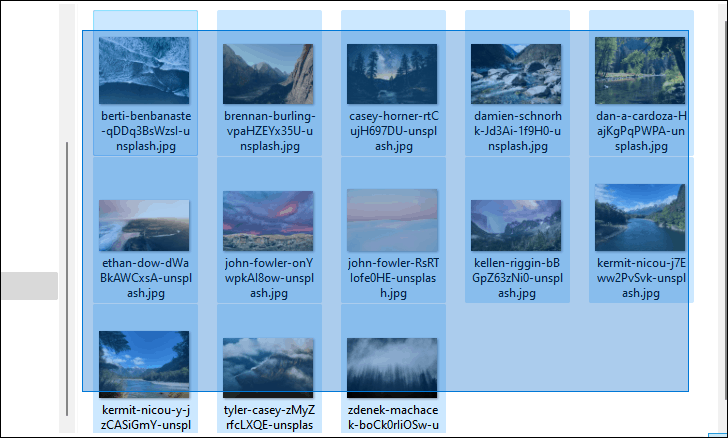 Click and hold the left mouse button at one corner of the files (typically the top-left corner), then drag the cursor to cover all the files. Release the mouse button once all desired files are within the selection box.