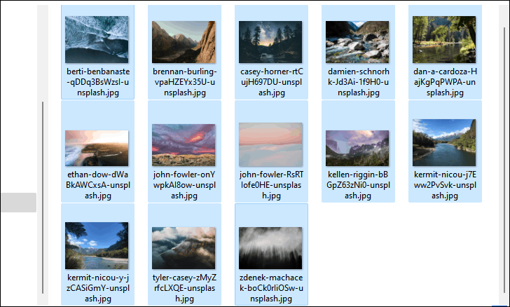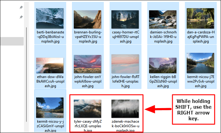 If some files are positioned differently, use the Right Arrow key while holding Shift to include them in the selection.