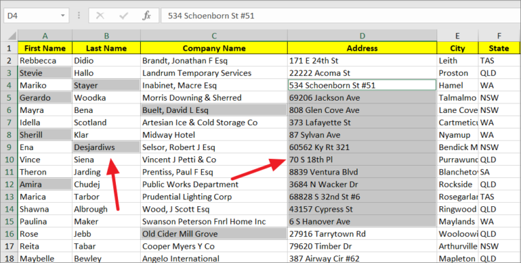 Just like in the Name Box method, you can type the addresses in any order you want. You can also select separate cells, ranges, rows, and columns together.