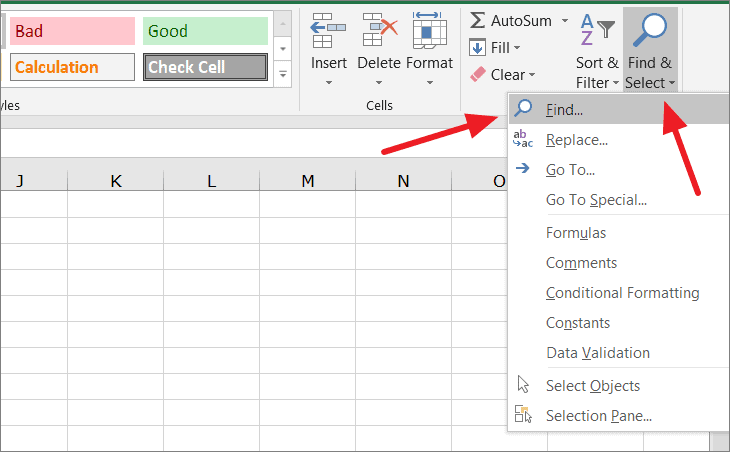Select the entire data range or the range in which you want to highlight cells, and then press Ctrl + F. Alternatively, you can also click the ‘Find & Select’ option from the ‘Home’ tab and select ‘Find’.