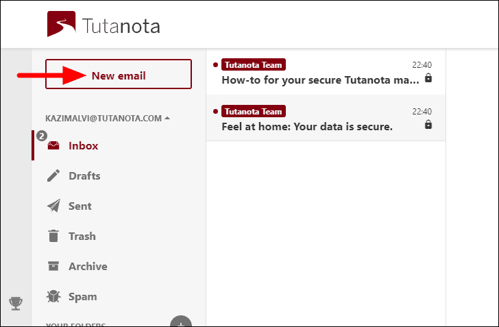 After you have signed up and logged in, click on the ‘New email’ icon at the top-left corner to draft a new email in Tutanota.
