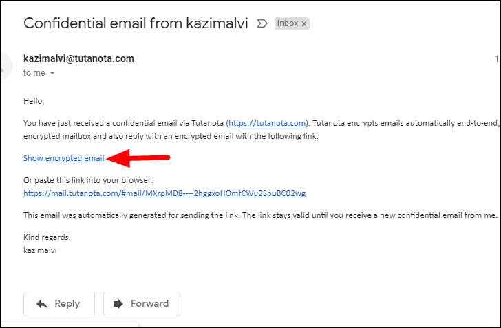 After you have sent someone an encrypted email with Tutanota, they will receive one with the link to the actual email. Click on the link in the received mail to view the original encrypted email.