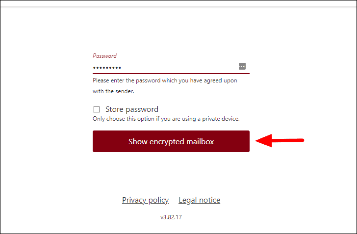 As soon as the user clicks on the link, they will be required to enter the password that was set earlier and then click on ‘Show encrypted mailbox’.