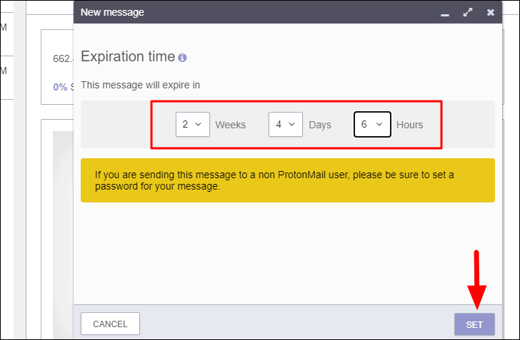 Click on each of the boxes and select the desired option from the drop-down menu. After you have changed the expiration time, click on ‘Set’ at the bottom to apply the changes.
