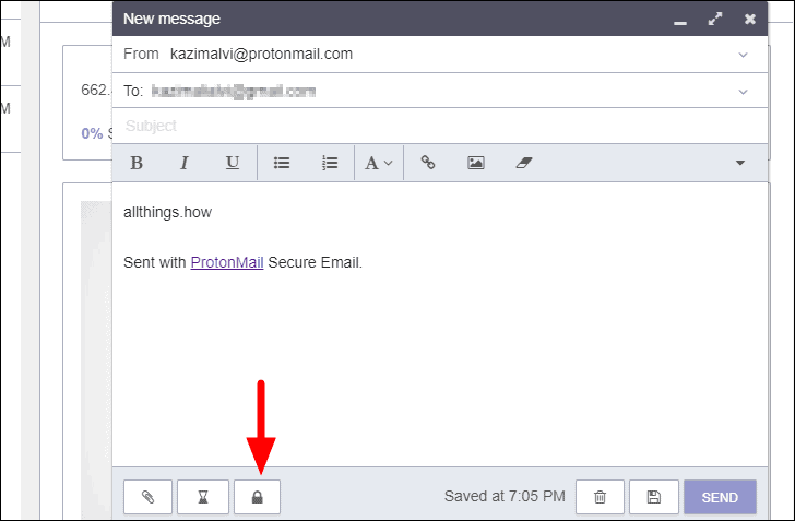 The next part is to add a password to the email which is the sole purpose why we are here. To add a password, click on the ‘Encryption’ icon which resembles a lock.
