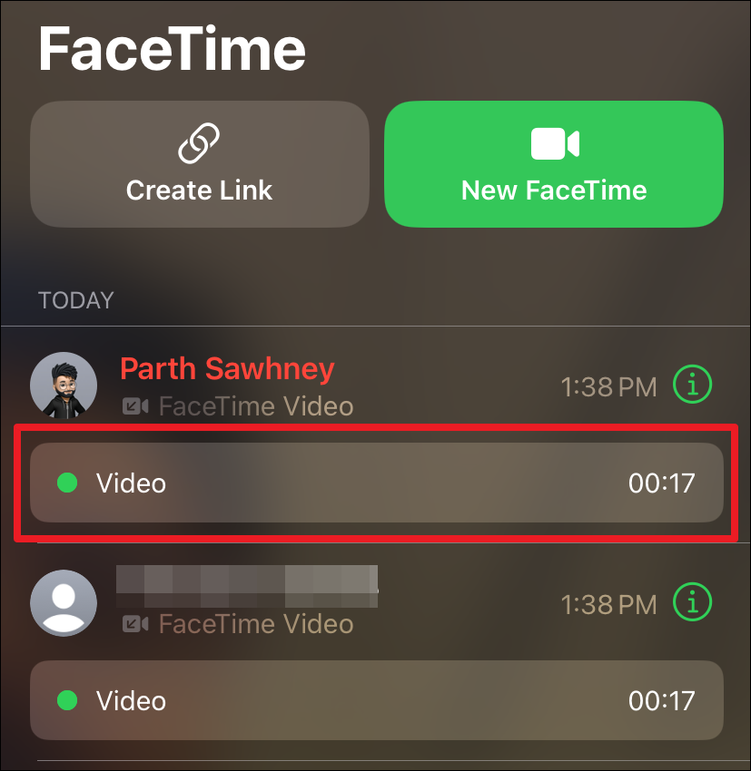 The sent video or audio message will be available for preview in the FaceTime app.