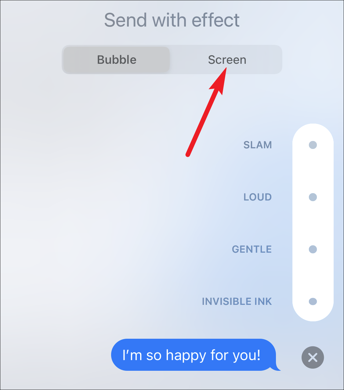 Then, tap the ‘Screen’ tab to switch to screen effects instead of bubble effects.