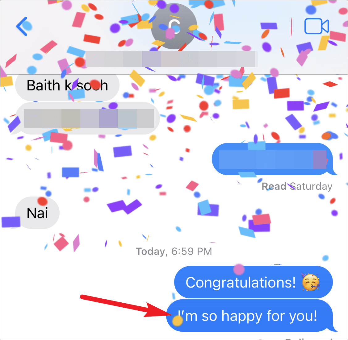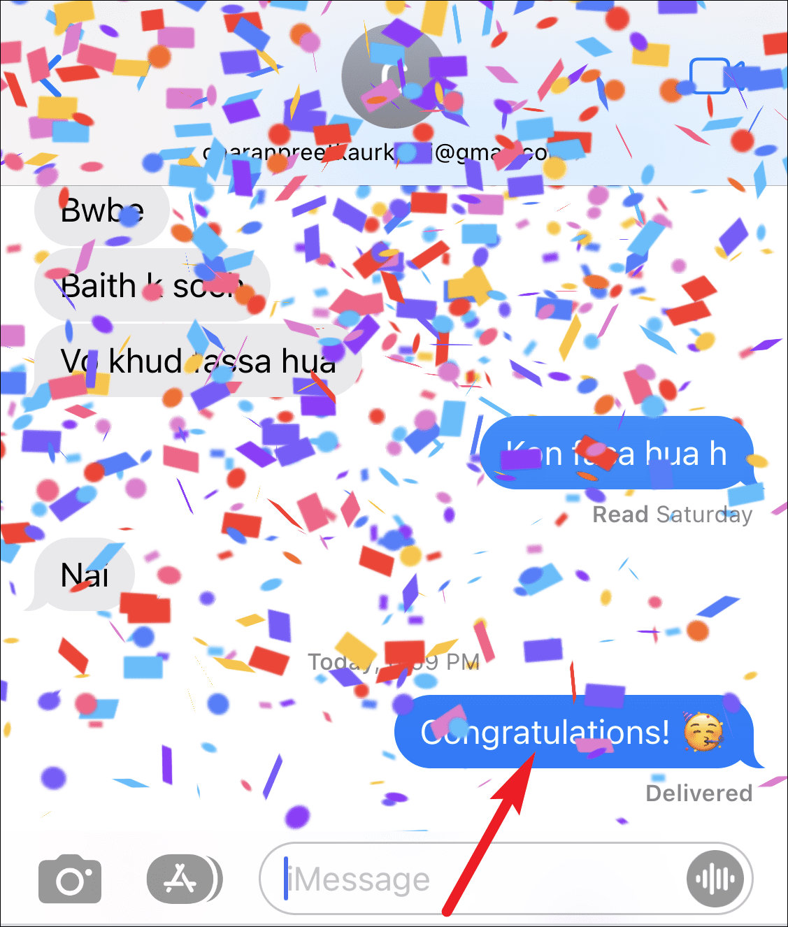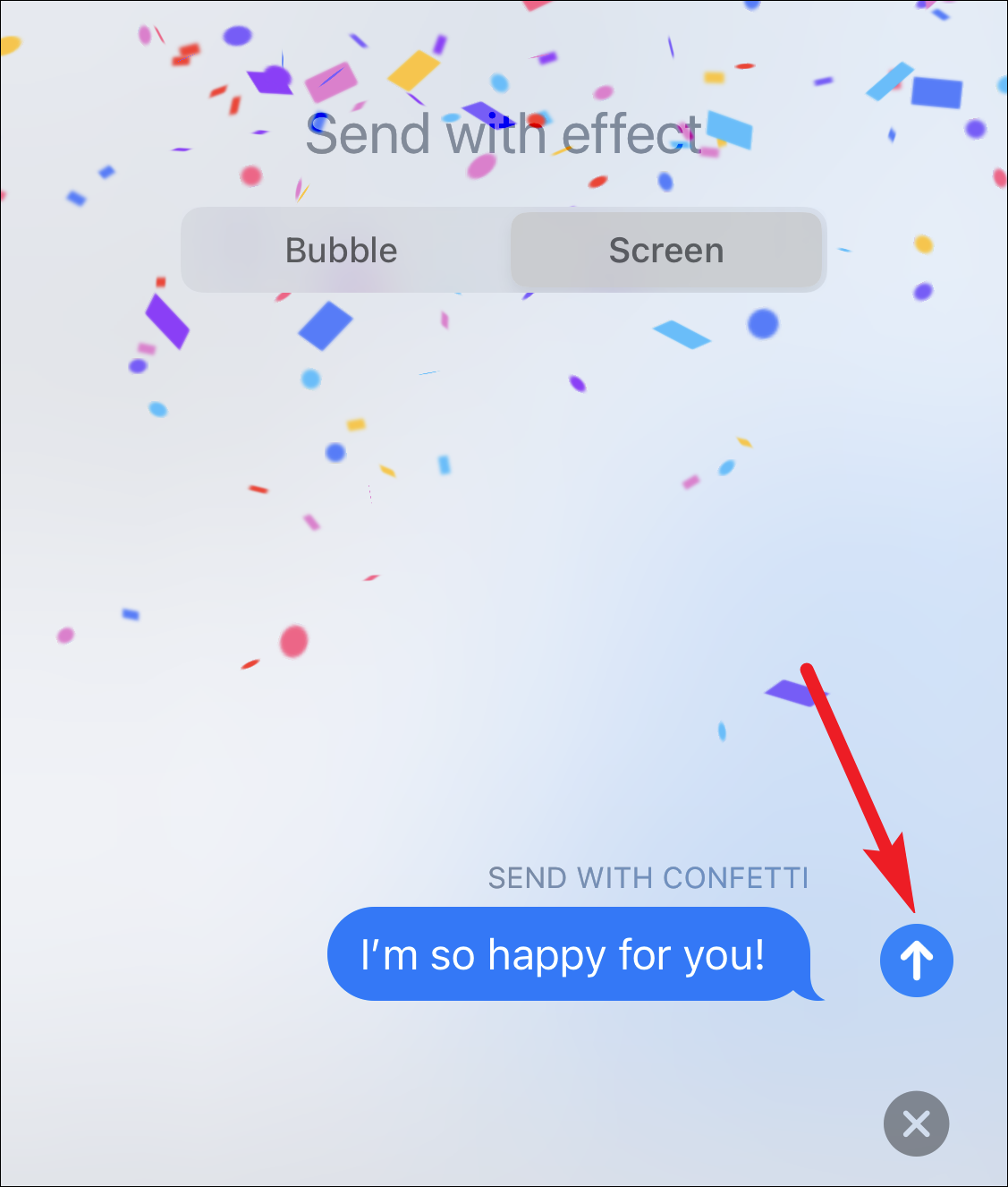 Swipe left until you reach the Confetti effect, which is 4th in number. So you’ll be swiping three times. Then, tap the ‘Send’ button to send the message with a downpour of confetti.