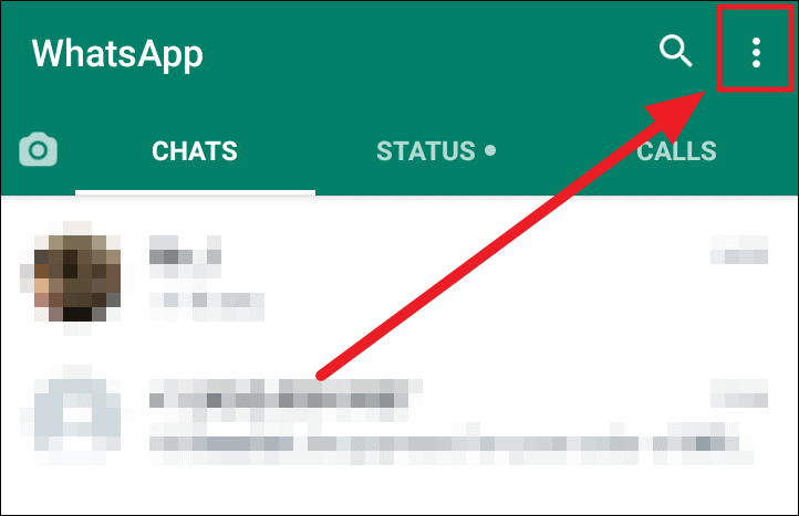 Default Message Timer is available only on the WhatsApp mobile app. To use this feature, launch WhatsApp on your phone and tap the ellipsis icon (three vertical dots) to the top right corner of the screen.