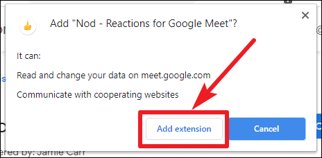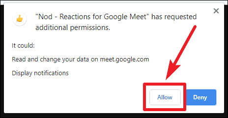 Note: Only participants who have installed the Nod extension can see and send emoji reactions. It's recommended that all meeting participants install the extension to fully benefit from this feature. Administrators can also deploy the extension across their organization's domain through the G Suite admin console.