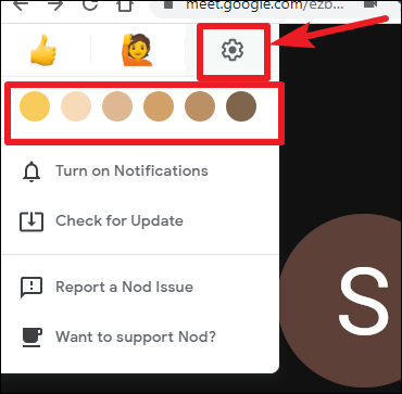 Customization Options: Nod allows you to customize the skin tone of the emojis to better represent yourself. To change the emoji skin color, click on the 'Settings' icon on the reaction bar and select your preferred color from the available options.