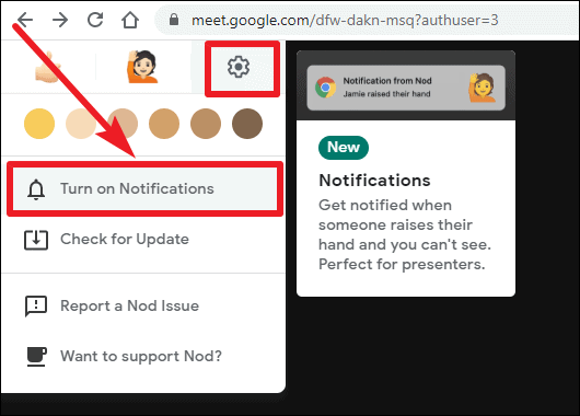 Nod adds a reaction bar to your Google Meet interface, enabling you to raise your hand or send various emoji reactions with a single click. Here's how you can install and use Nod in your Google Meet sessions.