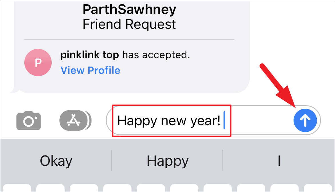 Next, type “Happy New Year!” in the message box and tap on the ‘send’ button. You will instantly see fireworks on your screen as a preview of what the receiver of the message will see on their screen.