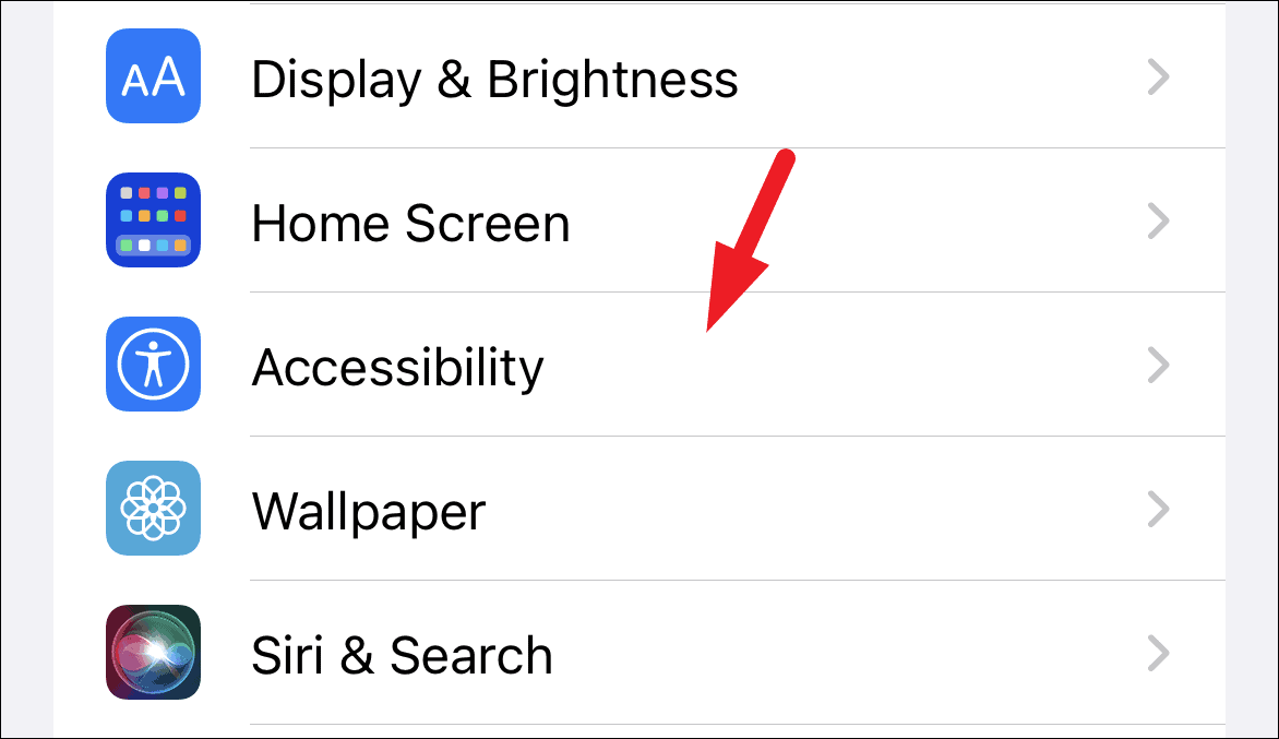 Next, scroll down to locate the ‘Accessibility’ tab and tap on it to proceed.