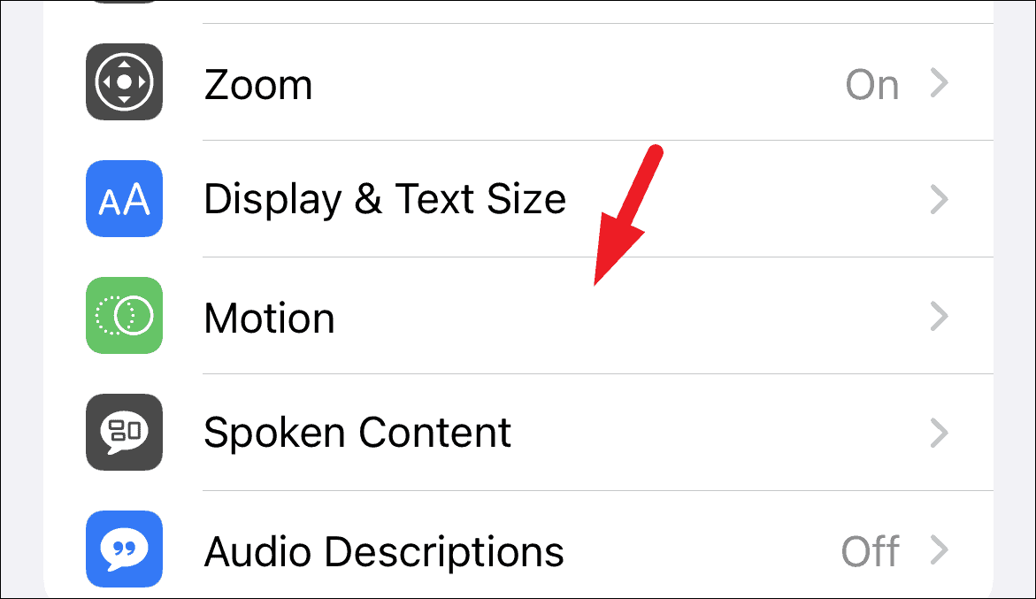 After that, tap on the ‘Motion’ tab present on the ‘Accessibility’ page.