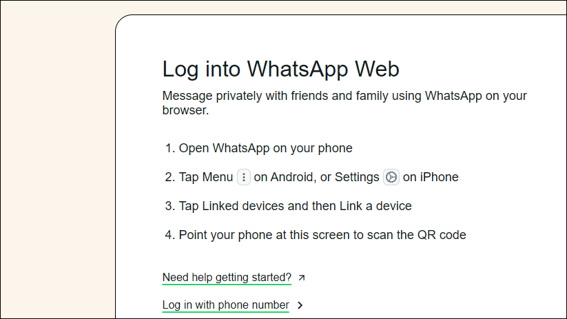 - Open WhatsApp Web in your web browser and scan the QR code shown on the screen using WhatsApp on your smartphone to sign in to your account.