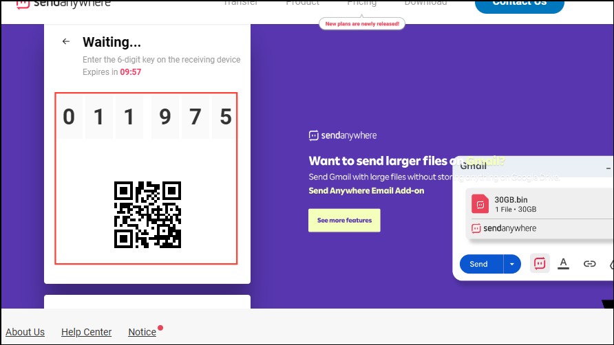 - You will see a numeric and QR code appear on your screen for a limited time. Share the code with the person you are sending the file to. They will have to access the Send Anywhere website and enter the code to download the shared file.
