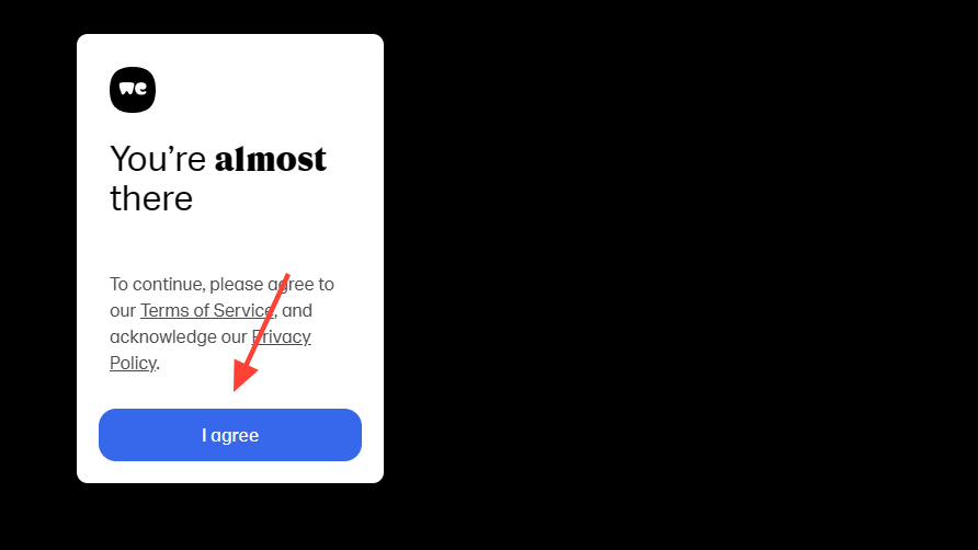 - Head to the WeTransfer website using your web browser and click on the 'I Agree' button on the left.