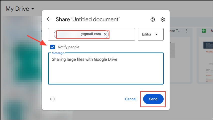 - You can select the 'Notify people' checkbox and type in your message in the provided box before clicking on the 'Send' button.