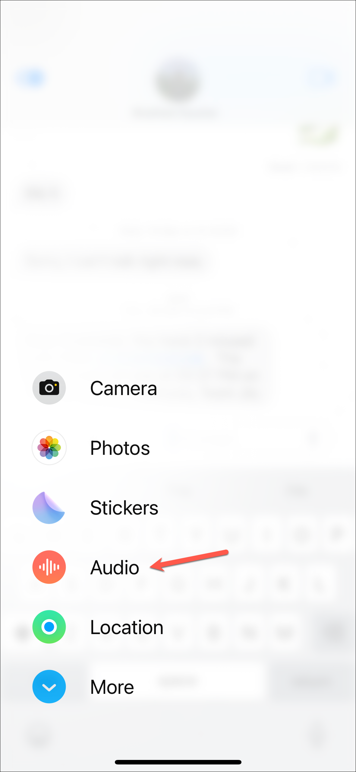 Step 3: In the app drawer, tap the 'Audio' button to access the voice message feature.