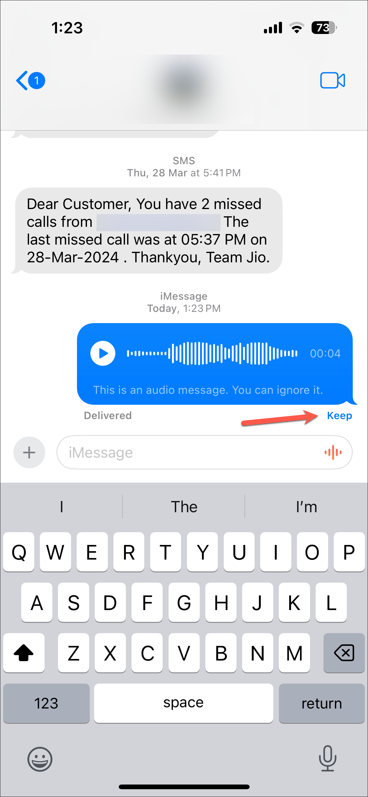Step 12: For the recipient, the audio message remains available to listen at any time. However, once they have listened to the message, it will be deleted after two minutes unless they also select 'Keep' to save it.