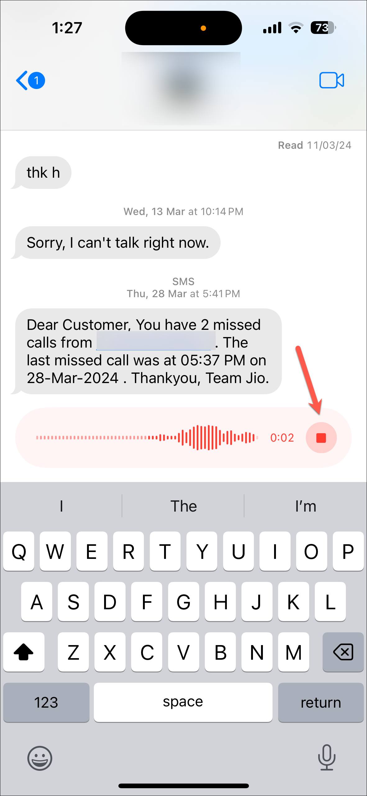Step 10: After sending a voice message, the option to record a new voice message will appear to the right of the text message field for easier access. However, if you use the dictation feature again, the microphone icon will switch back to dictation. Essentially, the icon next to the message field reflects the feature you last used in a particular chat.