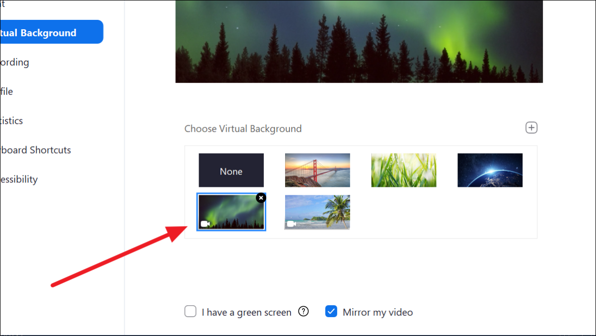 To set a video background in Zoom, click on a thumbnail marked with a ‘📹’ icon (see image below). Zoom provides a couple of videos itself in the app, but you can add your own videos too.