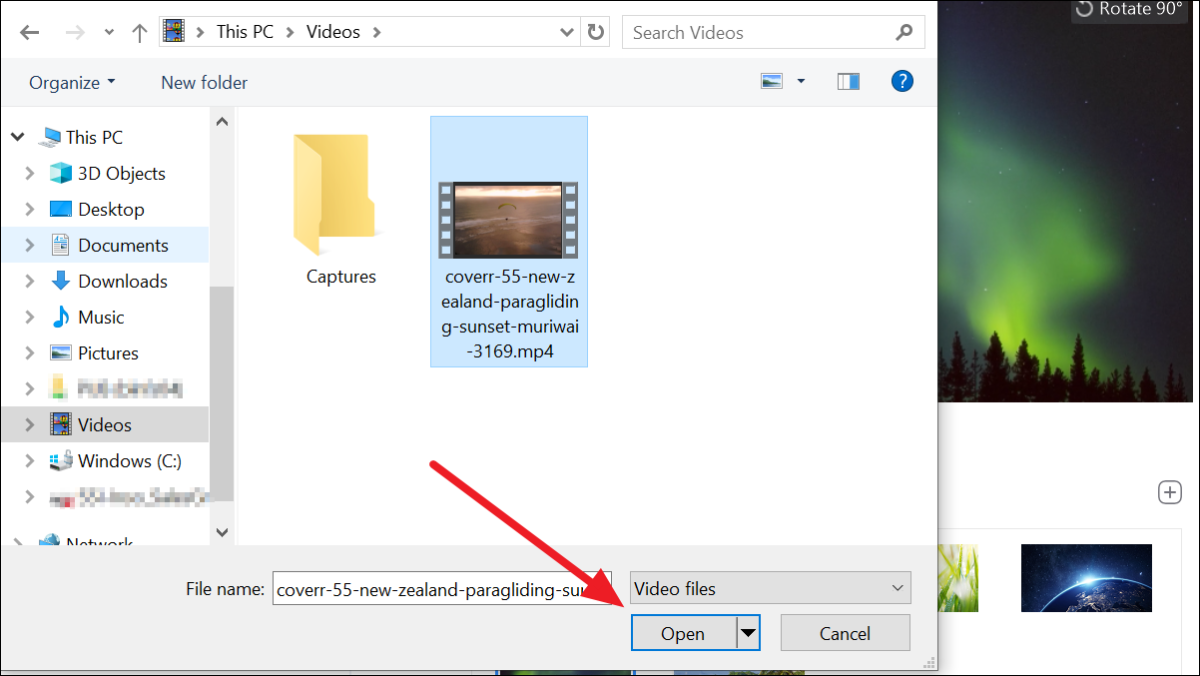 Select a video saved on your computer when prompted to ‘Choose a background video’ in a File Explorer window. The video should be of MP4 or MOV format with a minimum resolution of 360p and a maximum resolution of 1080p.