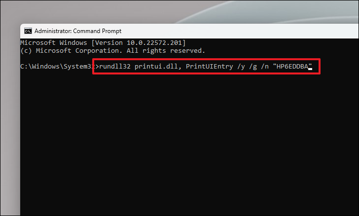 rundll32 printui.dll,PrintUIEntry /y /q /n "<Printer name>"Replace <Printer name> with the exact name of your printer as it appears in your system's devices.