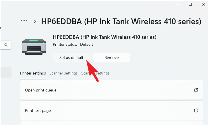 Step 6: On the printer's settings page, click the Set as default button to make it your default printer.